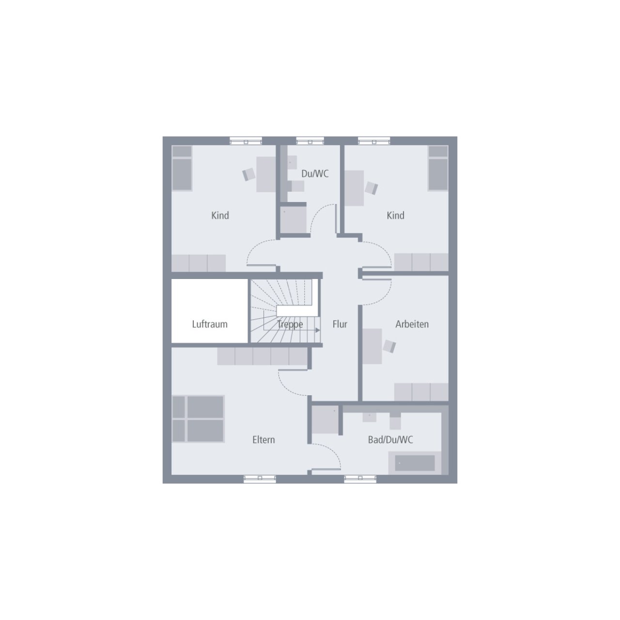2 Kinderzimmer, Büro, Elterntrakt.