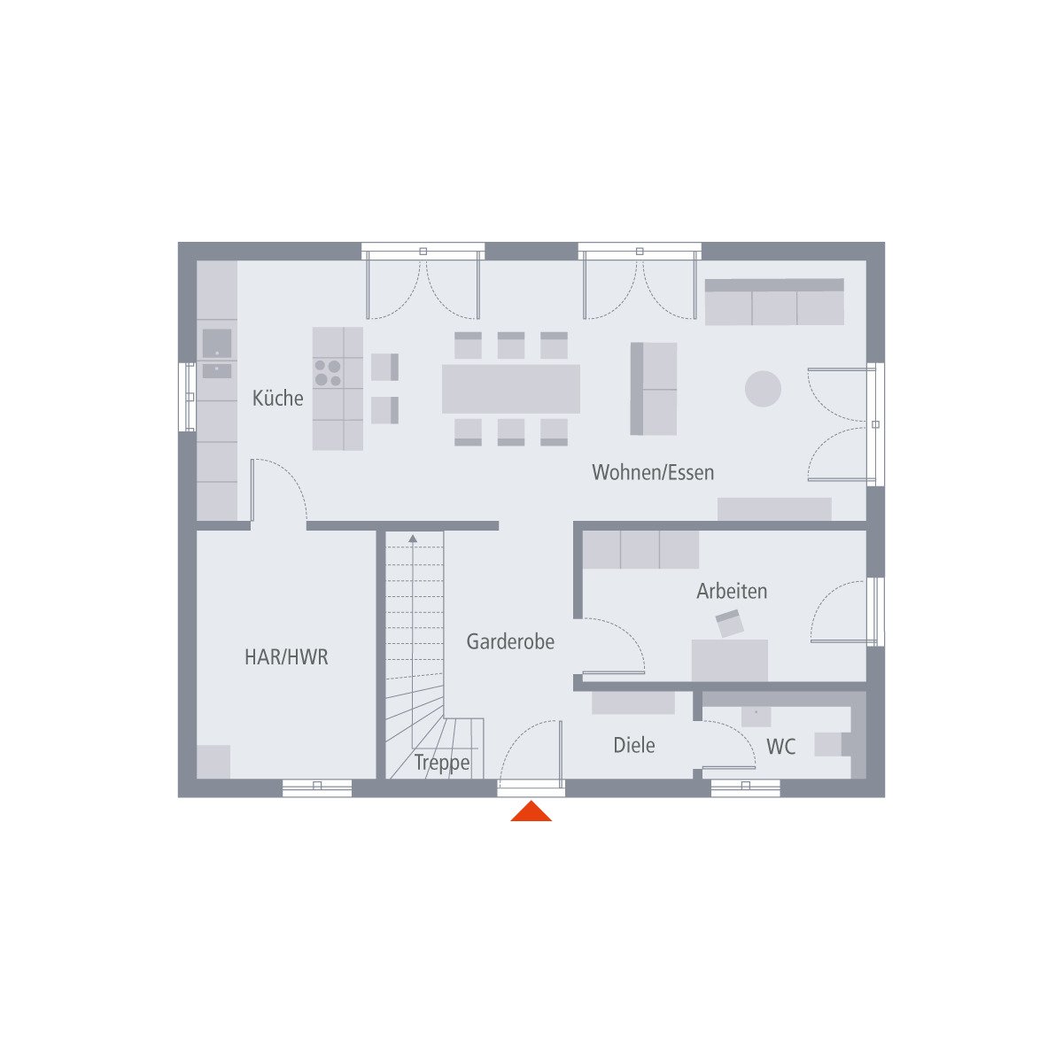 Schlichte Eleganz gepaart mit architektonischen Highlights – dadurch zeichnet sich unser Pult 11 aus. Das erste Highlight offenbart sich schon bei einem Blick von außen: Das versetzte Pultdach verleiht dem Haus eine individuelle Note und vereint auf harmonische Weise anspruchsvolles Design und maximalen Wohnkomfort. Schließlich beträgt die Stockhöhe unterhalb des Pultdaches 1,80 bzw. 2 m, was dem Dachgeschoss durch die angedeuteten Schrägen einerseits einen gemütlichen Charakter verleiht, was andererseits aber dafür sorgt, dass ausreichend Platz zum Stellen von Möbeln ist. Apropos Obergeschoss: Hier ist ausreichend Raum für ein großes Elternschlafzimmer mit integriertem Ankleideraum, für zwei Kinderzimmer sowie für ein großes Bad mit Wanne, Dusche und WC. Parterre unterdessen ist der Bereich zum Wohnen und Zusammenkommen. Hier befinden sich auf einer Fläche von knapp 83 m² ein großer Wohn-Ess-Koch-Bereich mit direktem Zugang zum Garten, ein Hauswirtschaftsraum, der direkt an die Küche anschließt, sowie ein Arbeitszimmer und ein Gäste-WC.