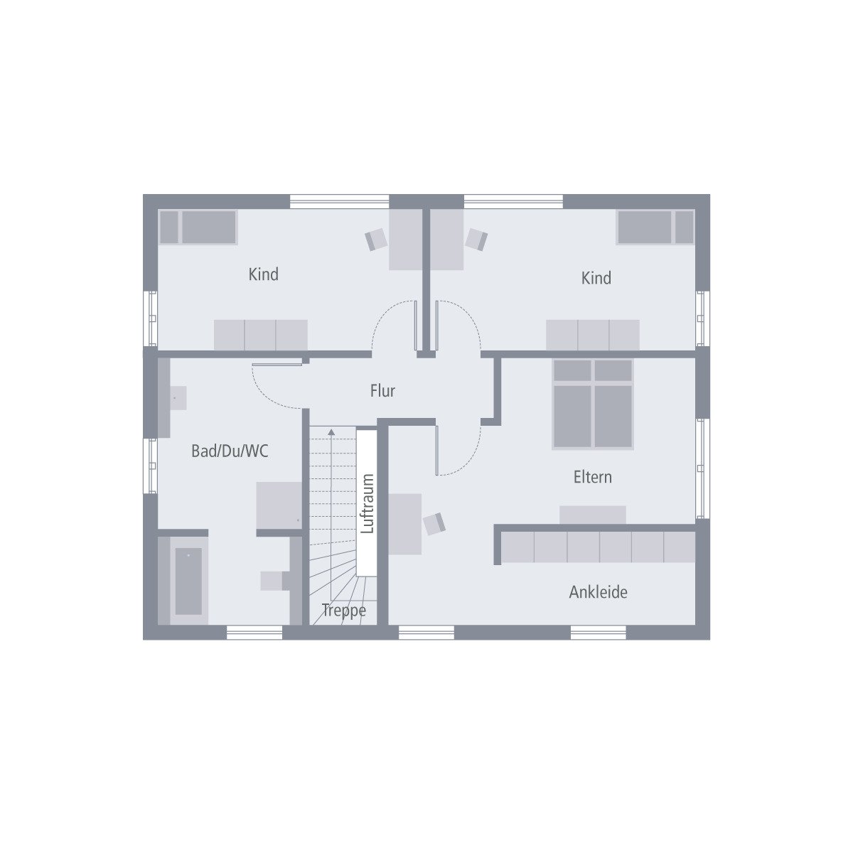 Schlichte Eleganz gepaart mit architektonischen Highlights – dadurch zeichnet sich unser Pult 11 aus. Das erste Highlight offenbart sich schon bei einem Blick von außen: Das versetzte Pultdach verleiht dem Haus eine individuelle Note und vereint auf harmonische Weise anspruchsvolles Design und maximalen Wohnkomfort. Schließlich beträgt die Stockhöhe unterhalb des Pultdaches 1,80 bzw. 2 m, was dem Dachgeschoss durch die angedeuteten Schrägen einerseits einen gemütlichen Charakter verleiht, was andererseits aber dafür sorgt, dass ausreichend Platz zum Stellen von Möbeln ist. Apropos Obergeschoss: Hier ist ausreichend Raum für ein großes Elternschlafzimmer mit integriertem Ankleideraum, für zwei Kinderzimmer sowie für ein großes Bad mit Wanne, Dusche und WC. Parterre unterdessen ist der Bereich zum Wohnen und Zusammenkommen. Hier befinden sich auf einer Fläche von knapp 83 m² ein großer Wohn-Ess-Koch-Bereich mit direktem Zugang zum Garten, ein Hauswirtschaftsraum, der direkt an die Küche anschließt, sowie ein Arbeitszimmer und ein Gäste-WC.