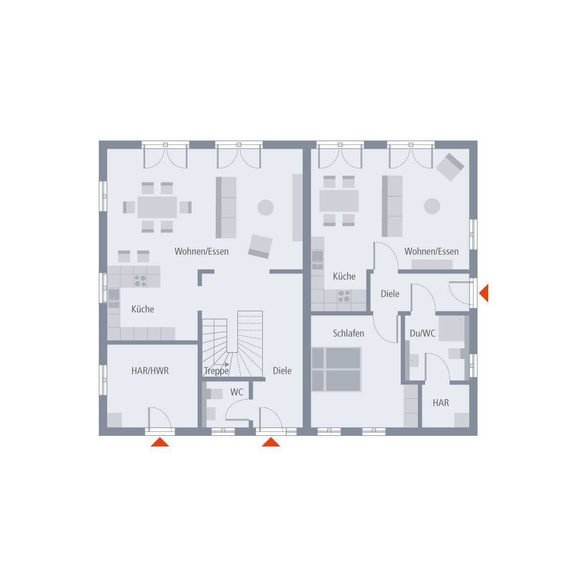 Das Einfamilien-Satteldachhaus verteilt sich großzügig auf 1 ½ Etagen. Ein halbes Untergeschoss und ein volles Obergeschoss bieten für Familien mit bis zu vier Kindern reichlich Raum zur individuellen Entfaltung. Schon der offen gestaltete Wohn-, Koch- und Essbereich deutet auf die großzügigen Raumverhältnisse hin. In der oberen Etage warten das 25 m2 große Eltern- und vier weitere Zimmer auf Sie. Im Erdgeschoss befindet sich die zusätzliche Einliegerwohnung. Mit eigenem Zugang und voller Ausstattung bietet sie vielfältige Nutzungsmöglichkeiten: sich verändernde Familiensituationen, Ferienwohnung, Business oder, oder … Der Gestaltungsfreiheit sind keine Grenzen gesetzt.