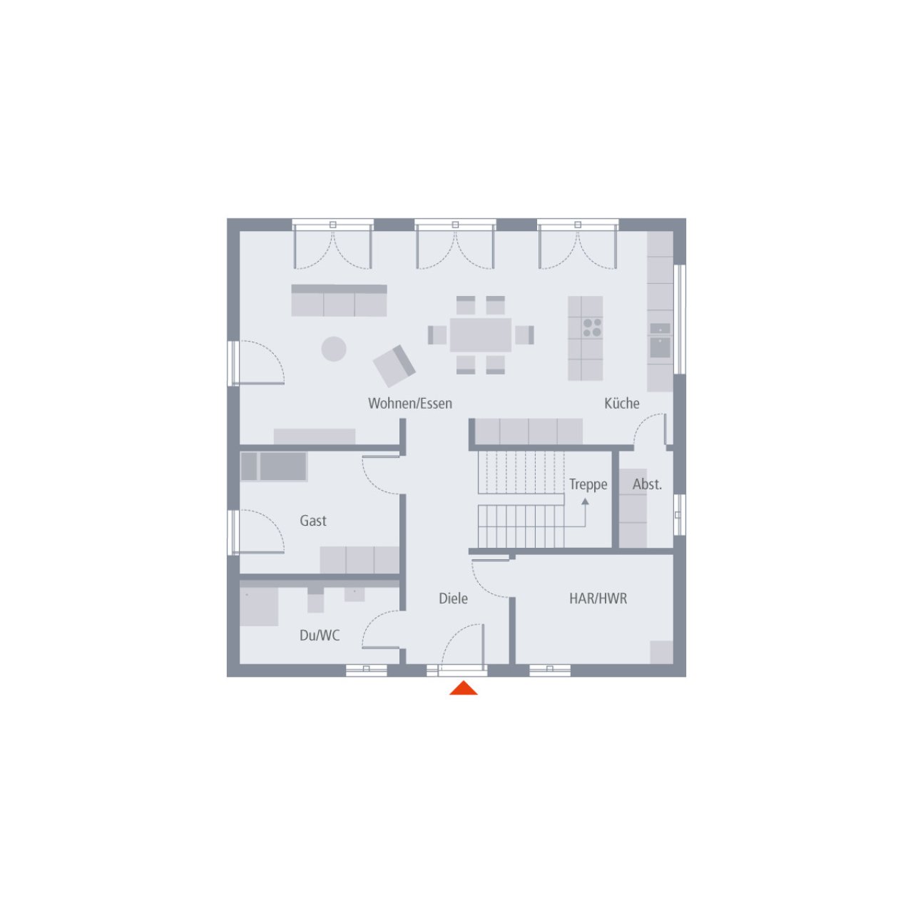 Als wahres Raumwunder entpuppt sich die Stadtvilla 21. Auf einer Wohnfläche von knapp 190 m2 finden hier Familien mit bis zu drei Kindern Platz – und haben sogar noch Gelegenheit, Schlafgästen einen eigenen Raum zur Verfügung zu stellen oder sich alternativ ein Büro oder einen Hobbyraum einzurichten. Durch die freundliche und helle Diele führt der Weg direkt in den Wohn-Ess-Kochbereich, der das perfekte Zentrum des Familienlebens ist. Komplettiert wird das Angebot im Erdgeschoss durch ein Gästezimmer, WC, Hauswirtschaftsraum sowie eine Abstellkammer. Die obere Etage ist so konzipiert, dass dort verschiedene Nutzungsmöglichkeiten denkbar sind: Neben dem Elternschlafzimmer und einem 15 m2 großen Bad mit separatem Toilettenbereich befinden sich dort drei weitere Zimmer. Hier finden drei Kinder Platz, es besteht aber auch die Option, dass einer der drei Räume als Spielzimmer fungiert.