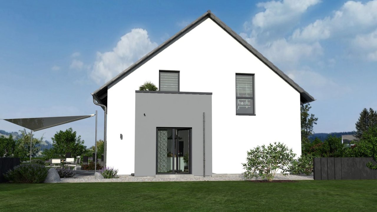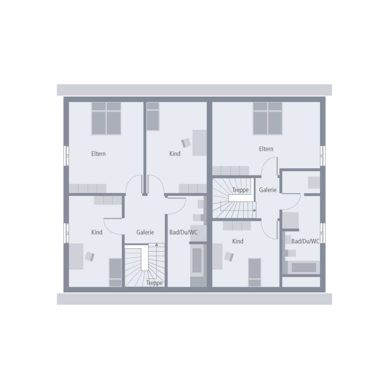 Erst auf den zweiten Blick erkennt man, dass unter dem Satteldach gleich zwei Häuser stecken. Mit unterschiedlichen Grundrissen und Größen entspricht die Planung nicht dem klassischen Doppelhaus. Während die eine Hälfte Raum für eine Familie mit bis zu zwei Kindern bietet, fühlen sich im etwas kleineren Haus Singles, Paare oder Familien mit nur einem Kind wohl. Ob Familienmitglieder mit einziehen oder fremdvermietet wird, entscheidet der Bauherr. Jedes Haus hat seinen eigenen Hauswirtschaftsraum. So wirtschaftet jeder autonom. Alle Räume überzeugen im typischen OKAL-Stil mit hohem Komfort, Großzügigkeit und viel Lichteinfall.