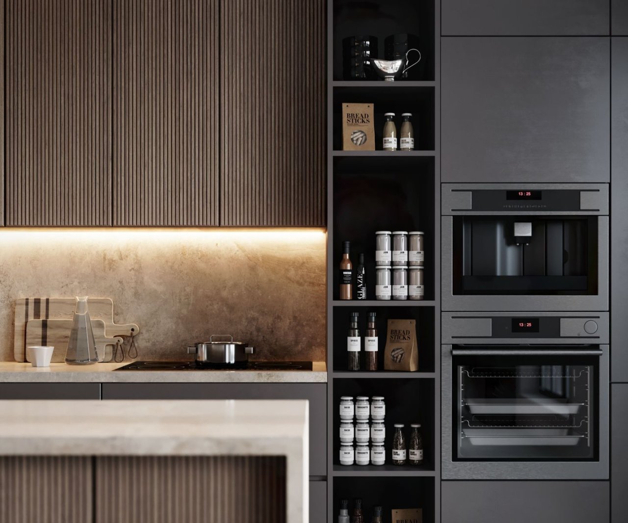 Wohnen, Essen und Kochen sind zusammen angeordnet.