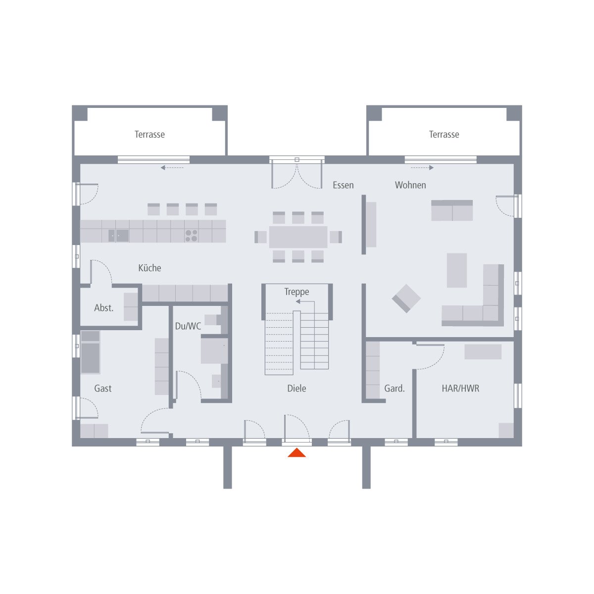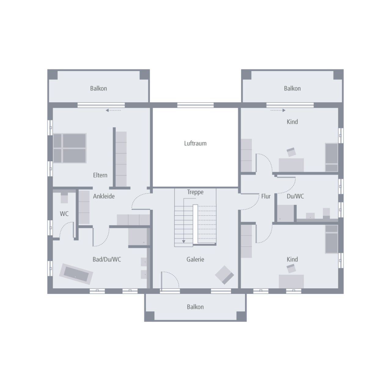 Herrschaftliches Wohnambiente auf einer Fläche von rund 300 m² – das ist unsere Stadtvilla Alabama. Angelehnt an die typische Südstaaten-Architektur vereint dieses Einfamilienhaus klassische und moderne Elemente auf eindrucksvolle Weise: Parterre befindet sich der große Wohn-Ess-Bereich mit sich angrenzendem Wohnzimmer. Drei große Türen ermöglichen einen direkten Zugang zum Garten und sorgen zudem für maximalen Lichteinfall. Besonders praktisch: Direkt neben der Küche befindet sich ein kleiner Abstellraum. Außerdem im Erdgeschoss: Gästezimmer und Gäste-WC sowie ein geräumiger Hauswirtschaftsraum. Über die zentral im Dielenbereich gelegene Treppe führt der Weg ins Obergeschoss, das in Eltern- und Kinderbereich unterteilt ist. Das Reich der Eltern besteht aus einem großen Schlafzimmer mit Ankleideraum und sich direkt anschließendem Bad mit abgetrenntem Toilettenbereich. Gegenüber: der Rückzugsort für die Kinder. Zwei Zimmer sowie ein von beiden Seiten zugängliches Bad stehen hier zur Verfügung. Zudem garantieren drei Balkone Sonnengenuss zu jeder Tageszeit.