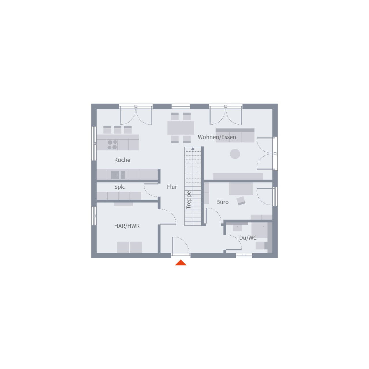 Das Design 10.2 steht für modernes Wohnen mit Charakter. Auf 140 m² verbindet sie Design und Alltag auf harmonische Weise. Der offene Wohn- und Essbereich bildet das Herzstück – hell, großzügig und mit einer geraden Treppe, die als Designelement den Raum gliedert. Büro, Gäste-WC, Hauswirtschaftsraum und Speisekammer machen das Erdgeschoss ebenso funktional wie stilvoll. Im Obergeschoss empfängt ein lichtdurchfluteter Flur, der zu den privaten Rückzugsorten führt: ein Elternzimmer, zwei Kinderzimmer und ein großzügiges Familienbad. Unter dem klassischen Satteldach entsteht ein Zuhause, das Ästhetik und Geborgenheit vereint.