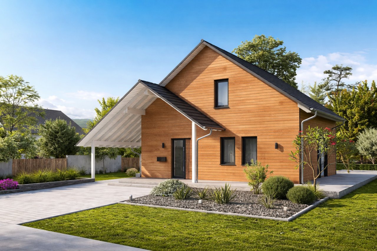 ergänzt, das direkt einen wettergeschützten Carport schafft.